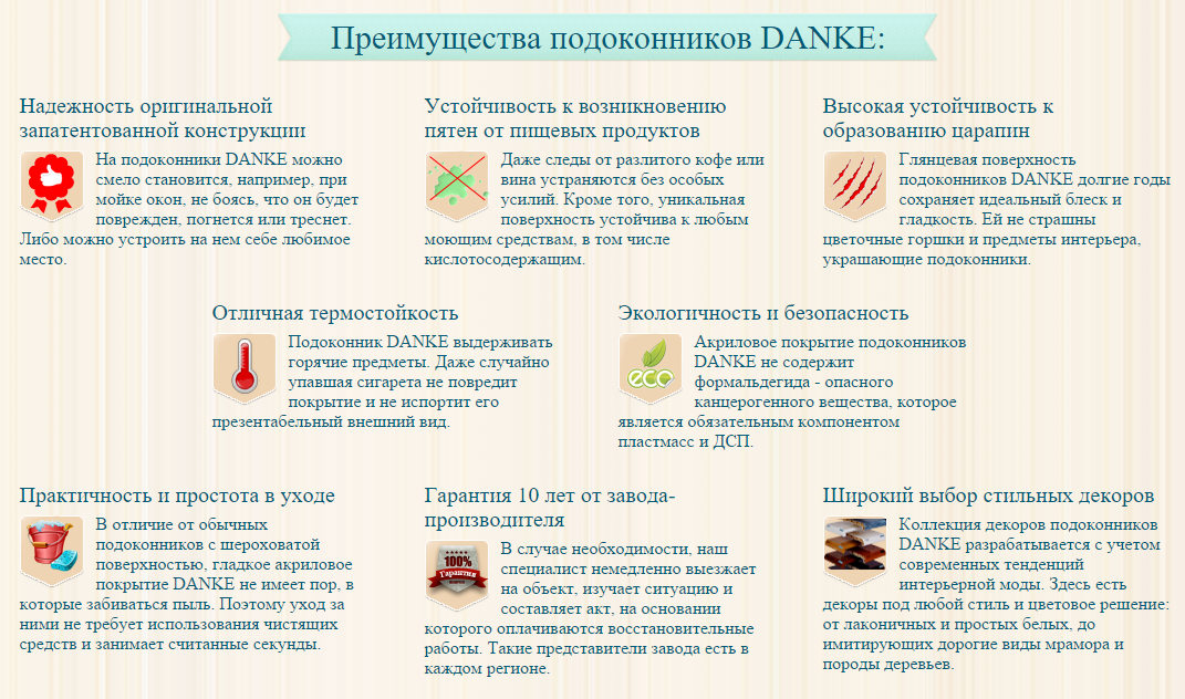 Mai mult de 10 ani de experiență în prelucrarea materialelor PVC. Folosim cele mai noi tehnologii și materiale , și oferă un produs de înaltă calitate - praguri cu strat acrilic de acoperire DANKE . Implementează praguri prin rețea de distribuție care acoperă întregul teritoriu al Ucrainei , Moldova, Rusia. DANKE - ofera un material plastic de inalta calitate, lucioase, cu strat acrilic de acoperire încorporând cele mai importante caracteristici pentru consumator: