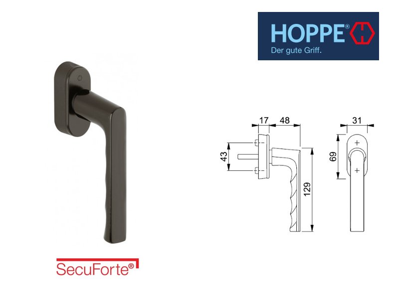 Maner fereastra, aluminiu HOPPE Hamburg Secuforte F9 (aluminium stahl)