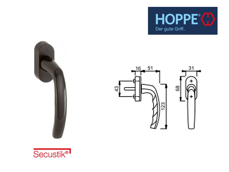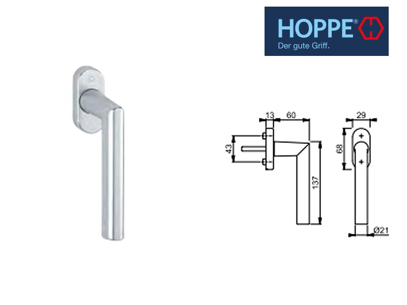 Maner fereastra aluminiu HOPPE Atlanta Secustic F9 (oțel din aluminiu)