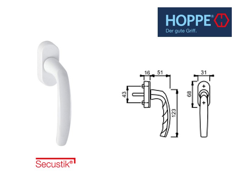 Maner ferestre oscilobatante, aluminiu HOPPE Atlanta Secustic RAL9016 (alb)