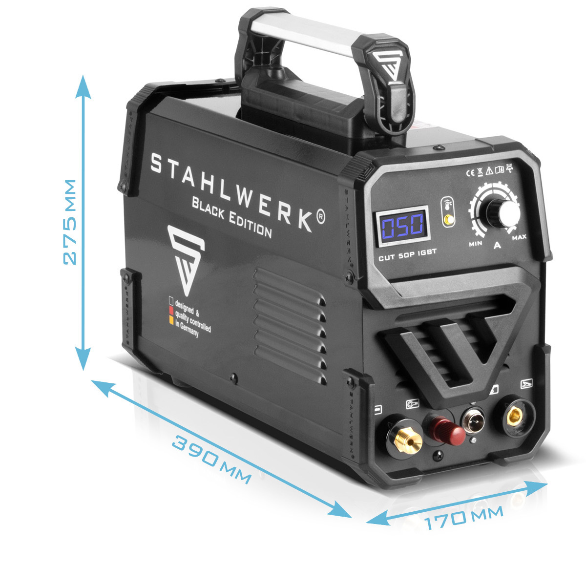 Aparat de tăiat cu plasmă STAHLWERK CUT 50 Pilot IGBT oferă o intensitate a curentului de 50 A și o aprindere auxiliară pilot precisă pentru o performanță de aprindere de primă clasă. În funcție de material, capacitatea de tăiere este de până la 14 mm (oțel moale ST37 până la 14 mm, B2A sau B4A până la 8 mm, aluminiu până la 5 mm). Cutterul cu plasmă este potrivit pentru toate metalele conductoare comune, precum și pentru tablă vopsită și pelicule de rugină. Curentul de tăiere poate fi reglat continuu de la 15 la 50 de amperi. Unitatea compactă este echipată cu răcire inteligentă și protecție la supraîncălzire și este ușor de transportat, cântărind doar 8,0 kg. Cutterul cu plasmă STAHLWERK CUT 50 Pilot IGBT este furnizat cu un pachet complet de accesorii.