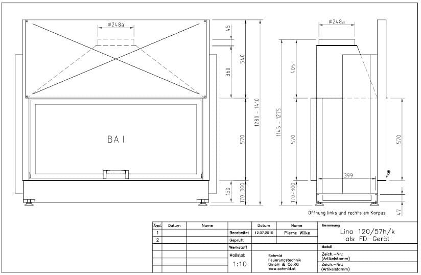 - Diametrul coșului de fum, mm: 250