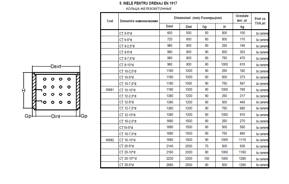 - Inele pentru drenaj (EN 1917)