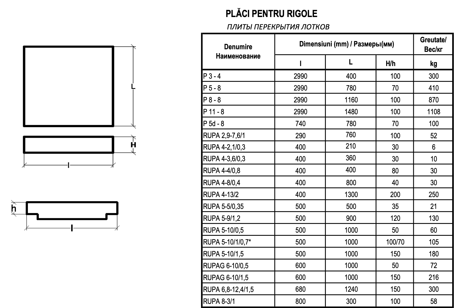 - Plăci pentru rigole