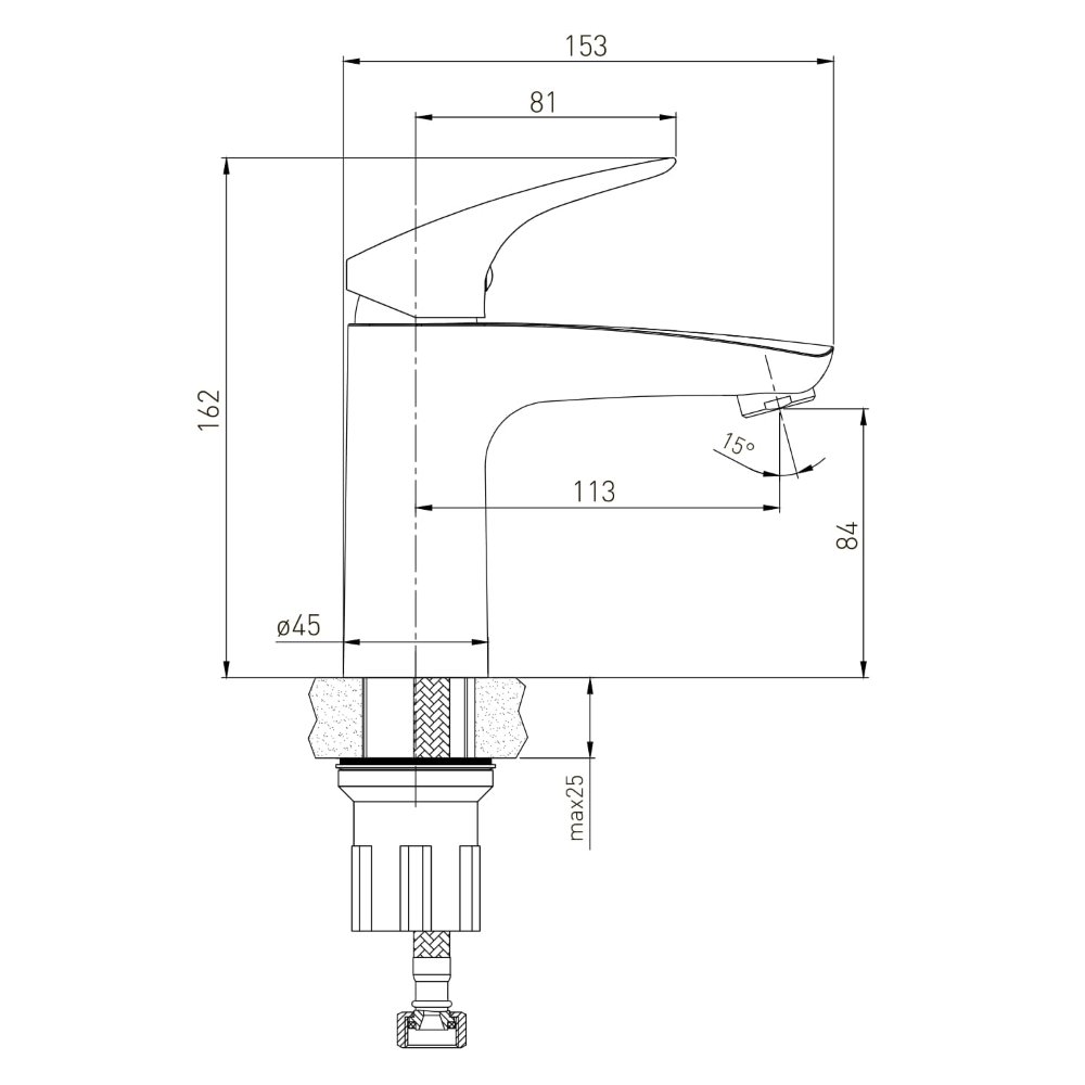 - Setul include furtunuri flexibile de conectare a apei cu piuliță de cuplare 1/2", lungime 45 cm