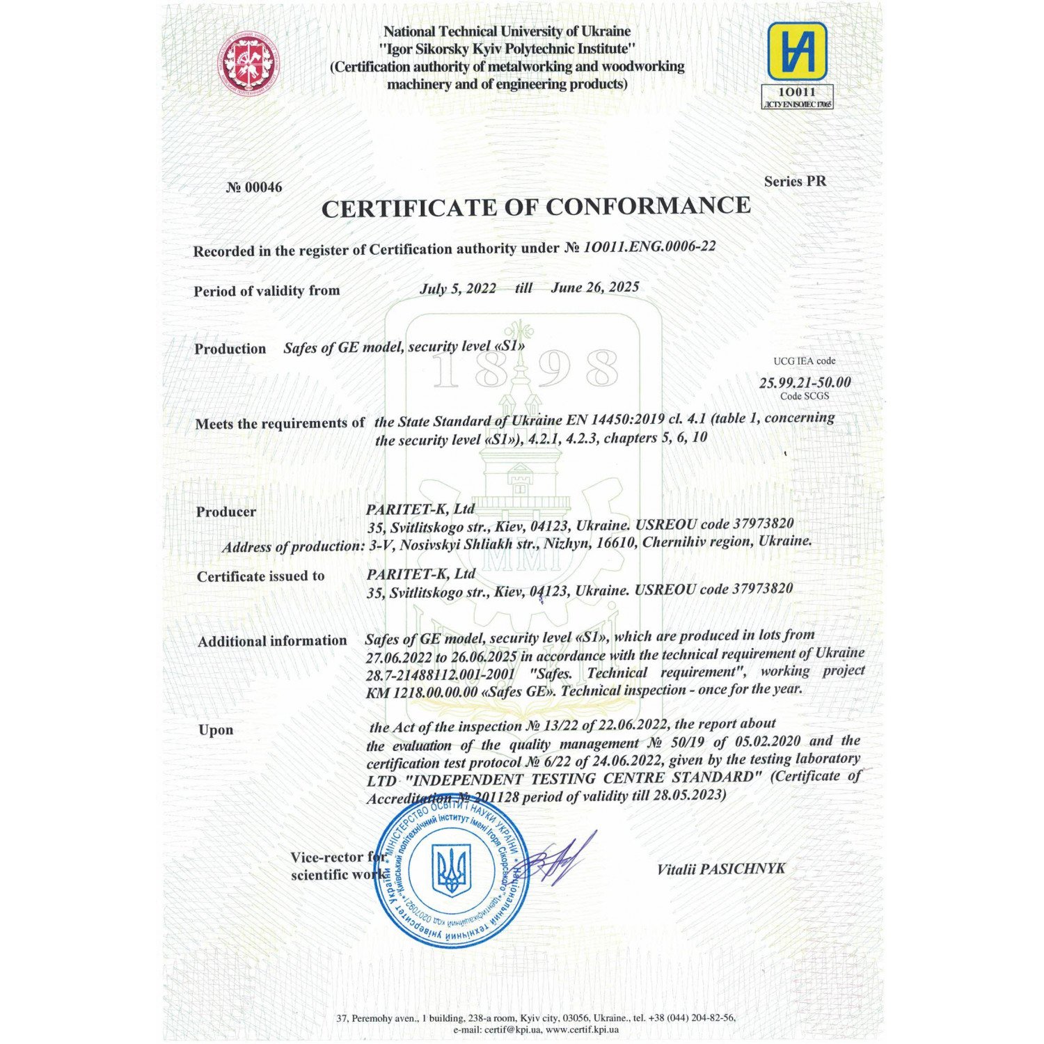 - Certificat: SR EN 14450 Clasa S1 de rezistența la efracție