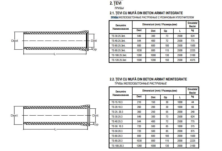 2.1. Tevi cu mufa din beton armat integrate