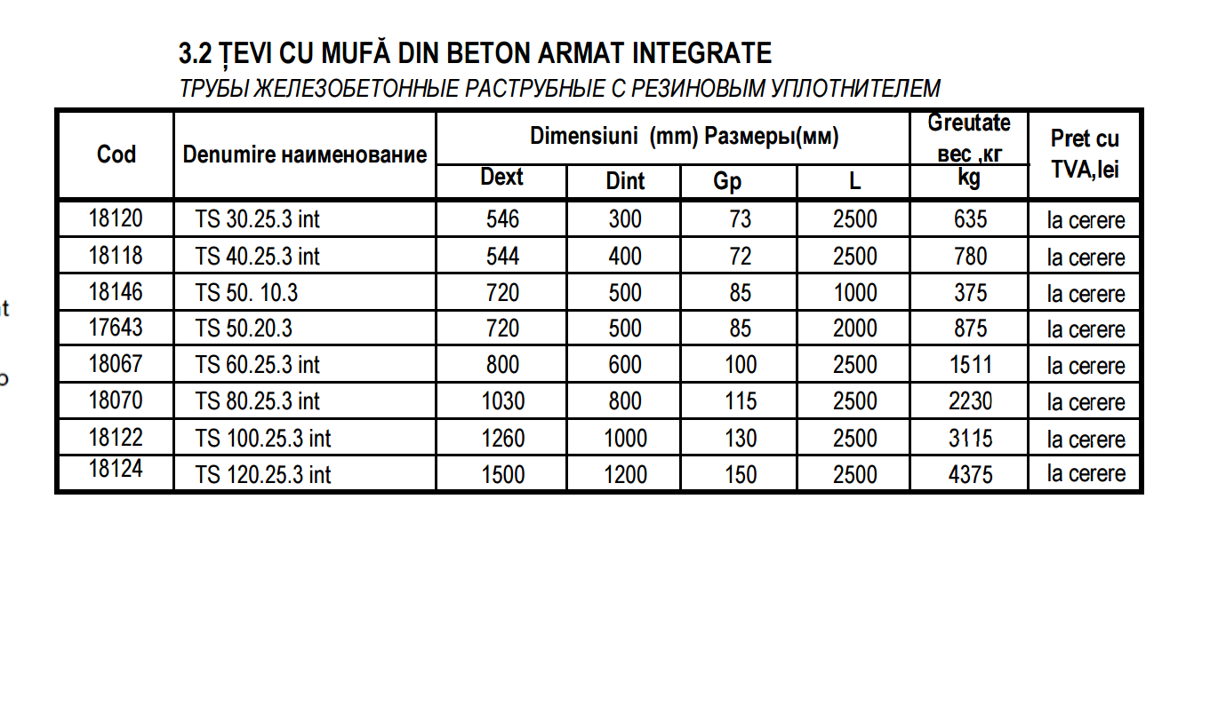 - Țevi cu mufa din beton armat neintegrate